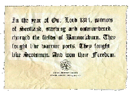 Each new generation seeks to interpret his story and to honour him in different ways. Poets, songwriters, playwrights, sculptors and artists have regarded his life as a source of inspiration. Those struggling against oppression, tyranny, slavery and injustices both at home and abroad have looked back to his example as a liberator, and have drawn strength and lessons from it. This booklet is an introduction to the life and legacy of William Wallace. The above text is from the introduction to Elspeth King's booklet. We can recommend this booket, first published in 1997, the year of the 700th anniversary of the Battle of Stirling Bridge. It is beautifully illustrated and also catalogues the highly successful 1997 'Scotland's Liberator' exhibition at the Smith Art Gallery and Museum in Stirling.
